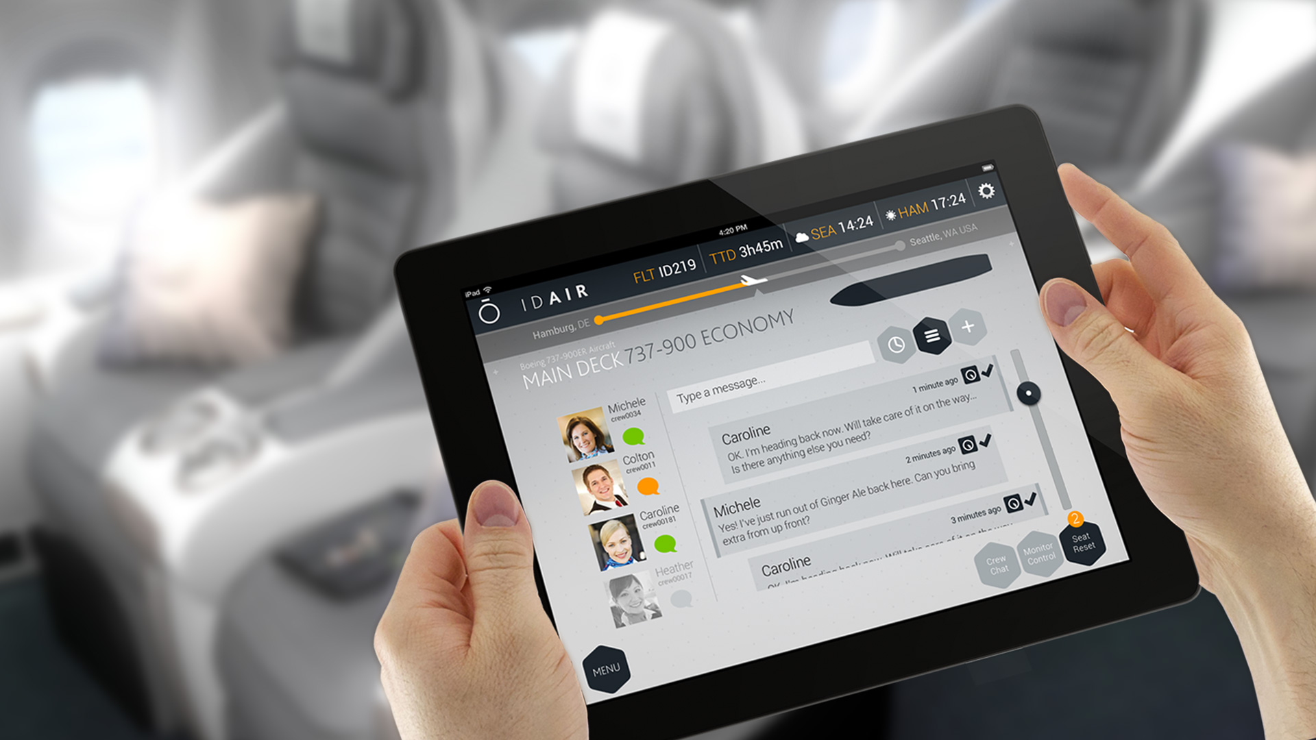 This UI concept represents an innovative approach to on-board crew-based cabin management systems, designed specifically for VIP and business jets. This forward-thinking design addresses the evolving requirements of aircraft cabin configuration, offering an intuitive interface that grants complete control to users.