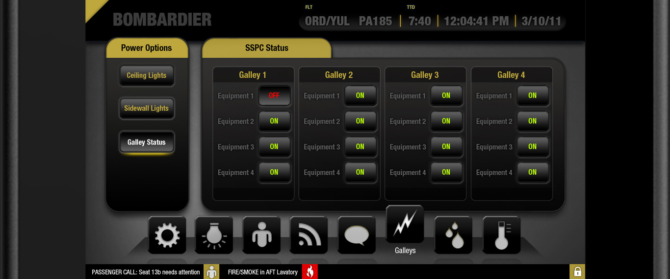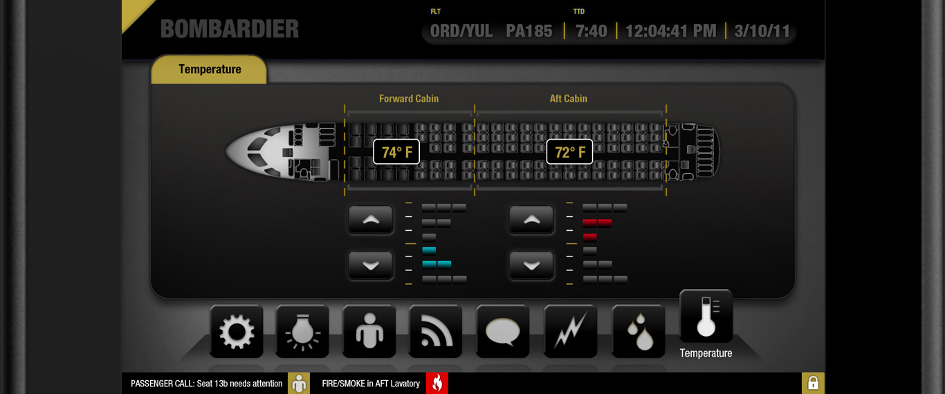 The Cabin Management Interface I designed for Bombardier, was showcased at the 49th International Paris Airshow, at the Le Bourget exhibition center in 2011. It has gone through four years of development and is now being implemented on Bombardier's CS-300 aircraft. It's very satisfying to see my work being adopted by major airlines like Swiss Air and Korean Airlines, further highlighting my impact in the field of aviation interface design.