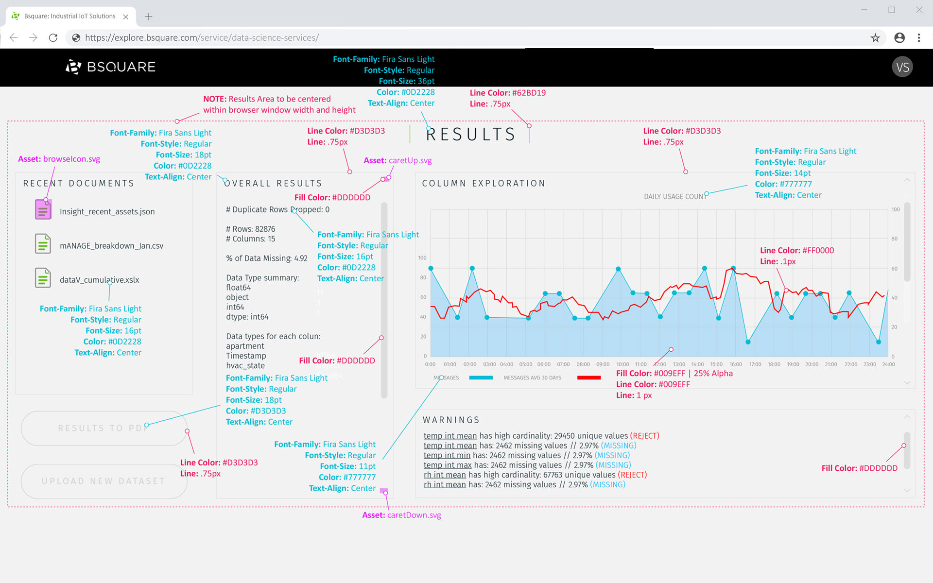 My final project at BSQUARE, which aimed to empower users to upload and analyze data from their own files online, embodies a valuable concept. The fundamental idea of providing users with the capability to seamlessly upload and analyze data, all while presenting the information in real-time through visualizations and tables, is both practical and user-centric. This not only enhances the overall user experience but also reflects my commitment to user-centric design principles. Additionally, my thoughtful wireframing approach lays the foundation for the development process, ensuring that the interface design is not only aesthetically pleasing but also practical and conducive to effective data analysis. I wanted to demonstrate my ability to bridge design and functionality, resulting in solutions that are not only visually compelling but also highly functional and user-friendly.