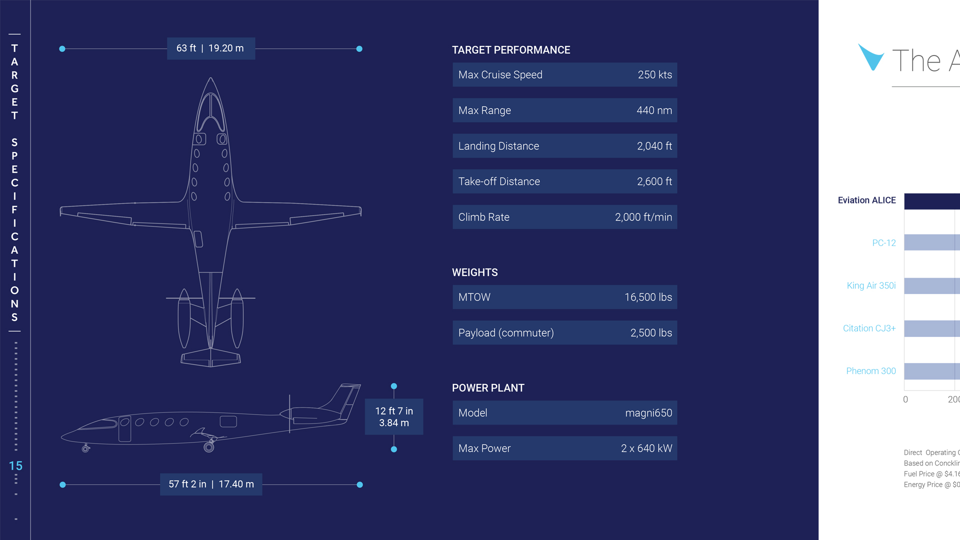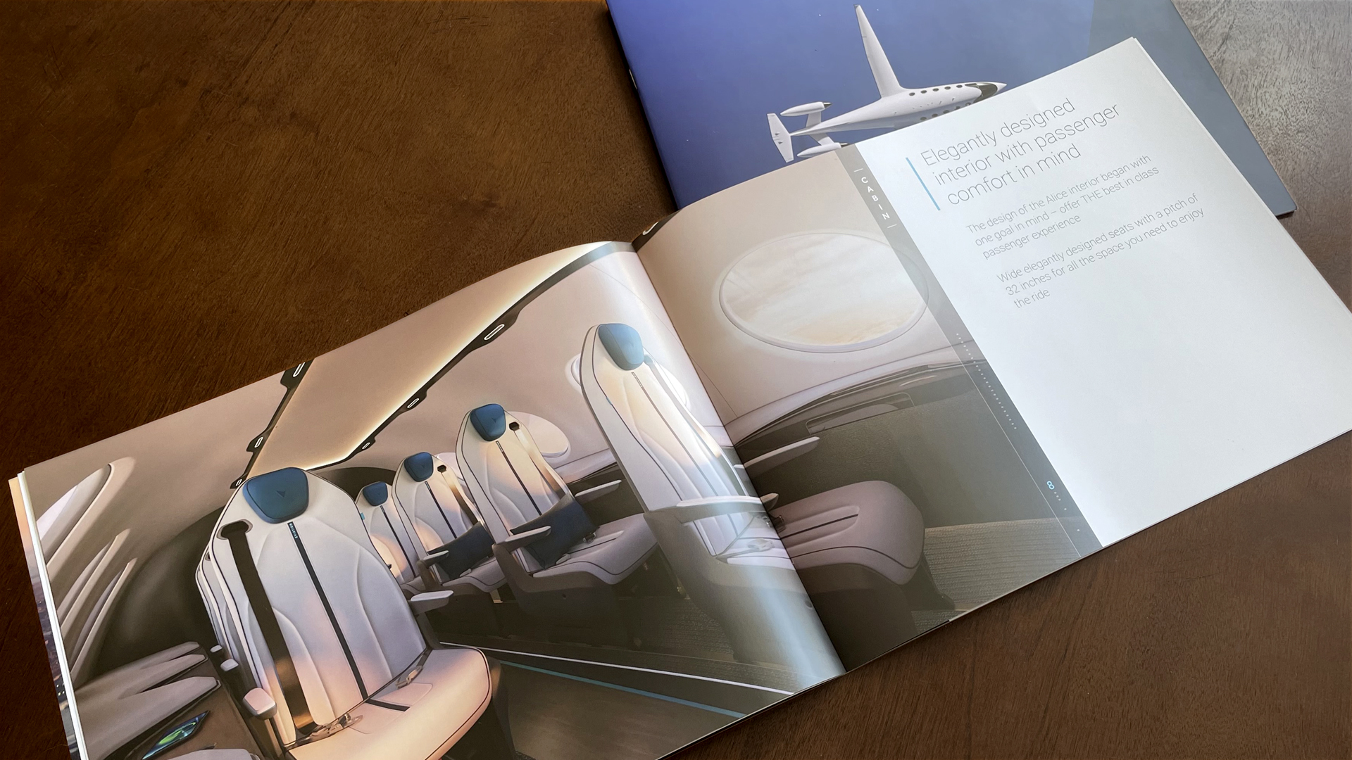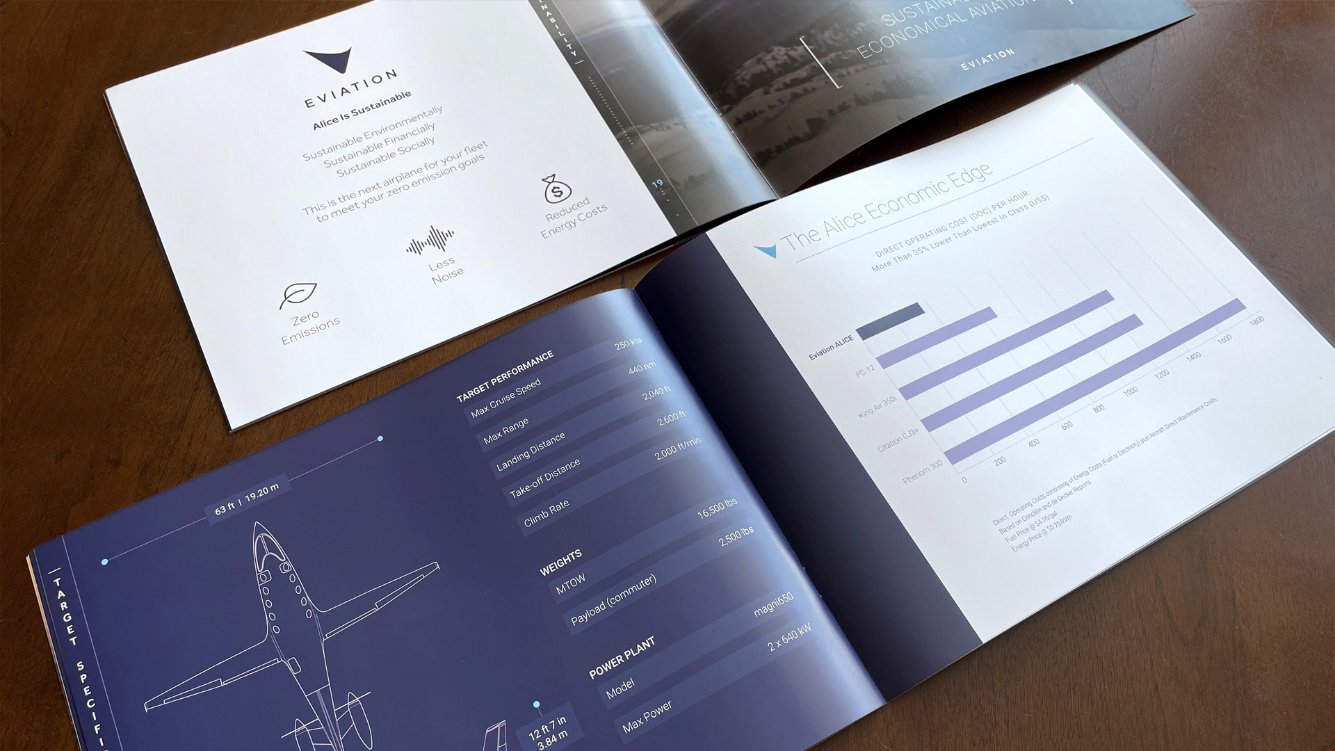 I was tasked with producing a brochure introducing Eviation's groundbreaking electric aircraft. This brochure is the first of a trilogy, highlighting the debut of Eviation's revolutionary electric aircraft, Alice. This remarkable aircraft is set to embark on its inaugural flight later this year and will be offered in three distinct configurations. In the image displayed here, you can see the Commuter variant, while the Cargo and Executive configurations are currently under active development. Alice has been meticulously engineered to be the epitome of silent, cutting-edge, zero carbon-emission aviation technology. This marks a significant leap into the future of electric aviation.