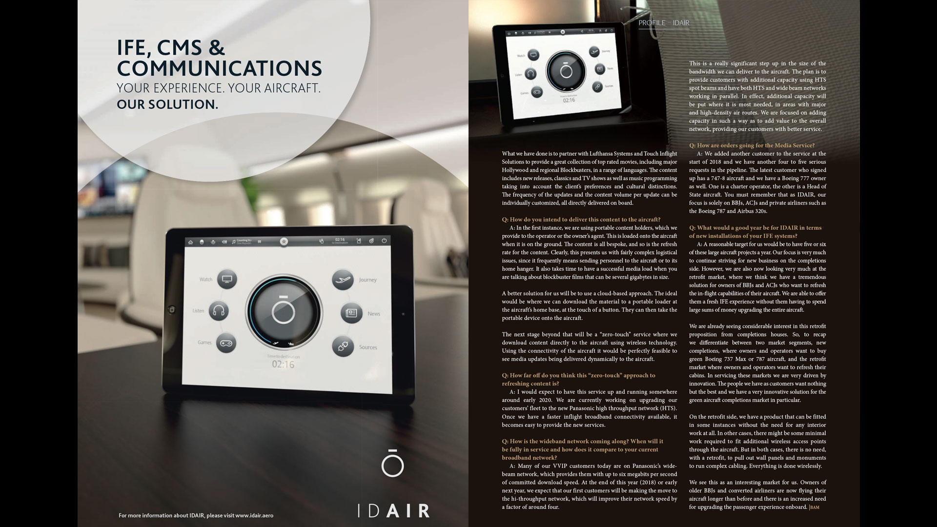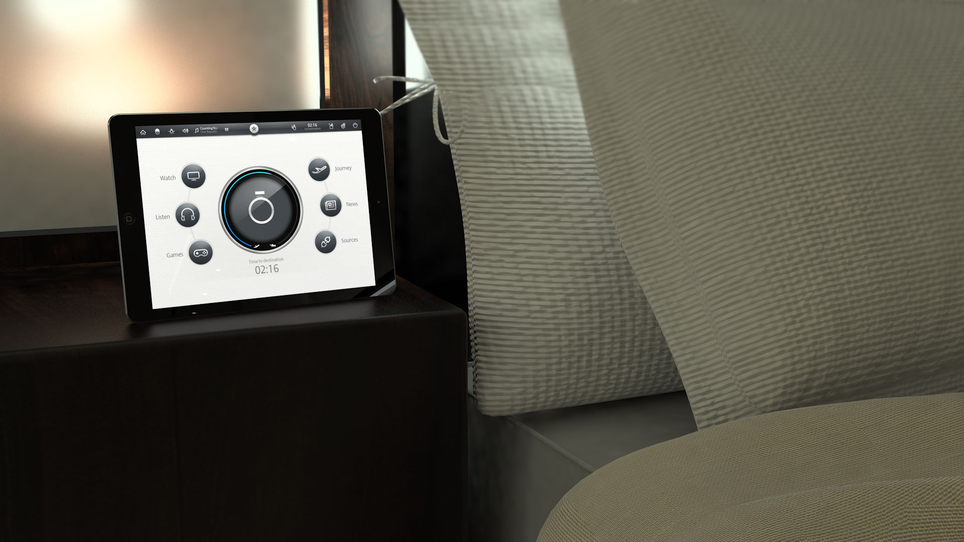 The project's objective was to showcase IDAIR's advanced Cabin Management System within the context of an actual luxury cabin environment. IDAIR's system architecture is celebrated for its flexibility, enabling seamless integration of various cabin interfaces, resulting in straightforward controls and an intuitive user experience. My role encompassed the presentation of the graphical user interface (GUI) across multiple devices integrated throughout a functioning luxury cabin.