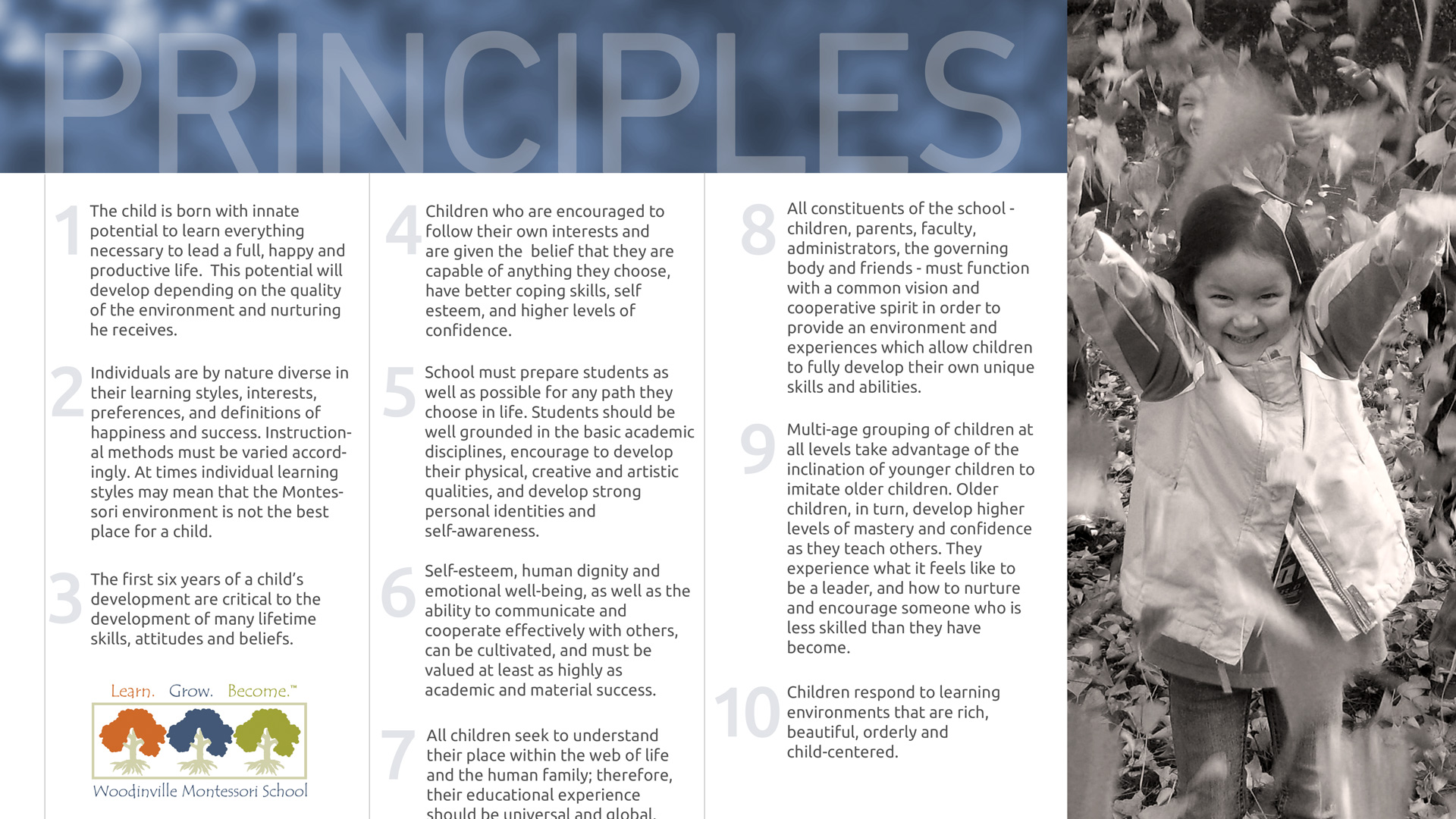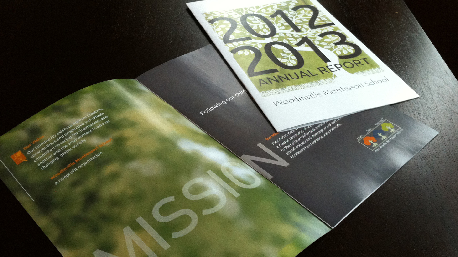 Both of my sons attended Woodinville Montessori School in Bothell, WA, and as active participants in the school community, we were encouraged to contribute volunteer hours to support the institution. My role as a volunteer centered around leveraging my design expertise within the school's Marketing department. Over time, I had the privilege of working on various projects, including the creation of Annual Reports, designing Yearbook covers, and assisting with the development of other essential school materials. This opportunity not only allowed me to give back to the school but also reinforced my commitment to supporting educational endeavors.